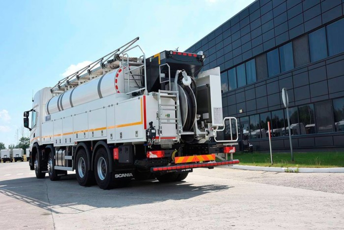 Машина оснащена 440-сильним двигуном з робочим об’ємом 13 літрів. Максимальний крутильний момент силового агрегату становить 2300 Нм. Двигун працює в парі з трансмісією GRSO905 (12+2) та системою автоматичного перемикання Scania Opticruise. На автомобіль встановлено паливну систему PDE.