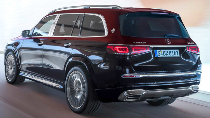 Бічний профіль позашляховика демонструє зроблені на замовлення 22-дюймові легкосплавні диски з мультиспицевим розташуванням, що повторює малюнок решітки радіатора. Щоб продовжити хромовану тему спереду, на стійках є хромовані пластини і також аналогічні вставки на рейлінгах. Усього буде доступно вісім двоколірних забарвлень для кузова Mercedes-Maybach GLS 600.