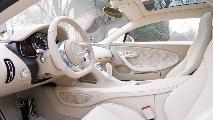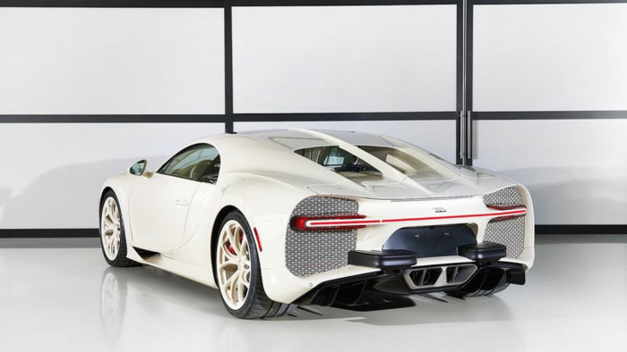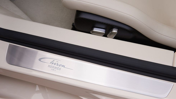 Розкішний Chiron забарвлений в кремовий колір, який офіційно має назву Hermès Craie. Малюнок підковоподібної решітки радіатора набраний з літер H: на нижній частині спойлера нанесено візерунок Courbettes – його також можна виявити всередині салону: на дверях і центральному тунелі.