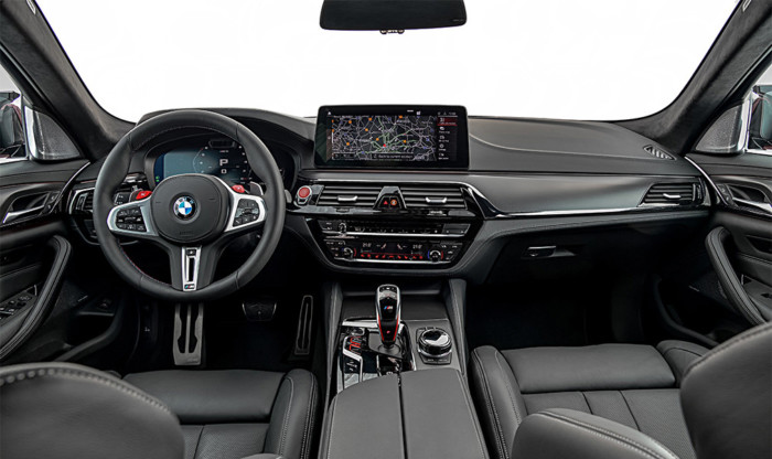 Також машина отримала більший дифузор і спортивну вихлопну систему з двома патрубками. M5 Competition оснащується спойлером, а салон автомобіля оформлений в чорних тонах.