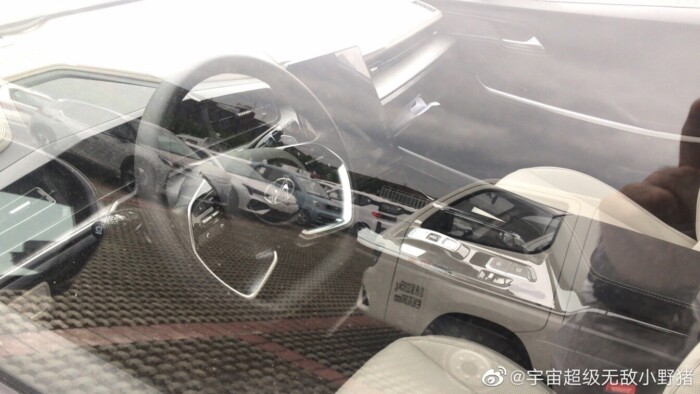 На єдиному фото салону, зробленому через скло, можна розгледіти кермо з усіченим ободом і великий планшетний дисплей медіасистеми.