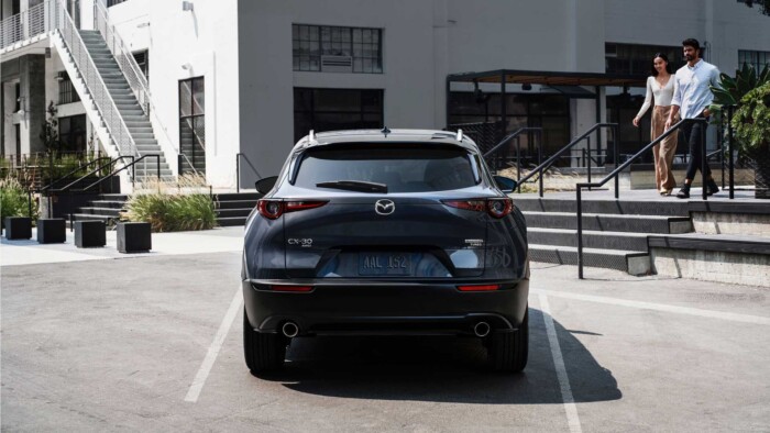 Також Mazda CX-30 Turbo отримала підвіску, яку можна переналаштовувати, чорні 18-дюймові легкосплавні диски, глянцеві чорні корпуси дзеркал, збільшені випускні патрубки. Оснащення, серед іншого, включає систему автоматичного гальмування при русі заднім ходом, асистент руху в пробках, систему кругового огляду.