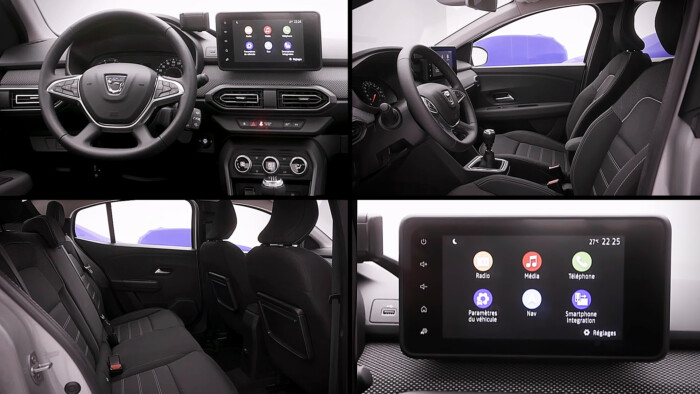 Дизайн інтер’єру у Logan і Sandero вже традиційно ідентичні (хіба що у Степвей є індивідуальні стилістичні прояви). Матеріали обробки, за даними Рено, стали краще, а сидіння – більш зручними. На центральній консолі – 8-дюймовий сенсорний екран мультимедіа, яка йде в більш дорогих комплектаціях. Також є автоматичний клімат-контроль.
