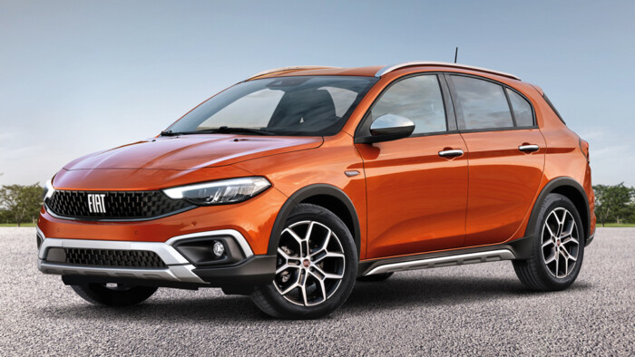 Fiat Tipo 2021 можна впізнати за новими світлодіодним фарам, зміненим бамперам і решітці радіатора. Варіант Cross відрізняється збільшеним на 40 мм дорожнім просвітом, пластиковим позашляховим обвісом і рейлингами на даху.