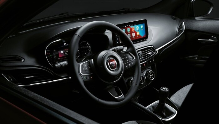 У салоні Fiat Tipo з’явилися віртуальний щиток приладів і великий 10,25-дюймовий тачскрін мультимедіа. Крім того, запропоновані нові варіанти обробки, а комплектацію поповнили системи контролю розмітки і «сліпих» зон, розпізнавання дорожніх знаків і стеження за втомою водія.