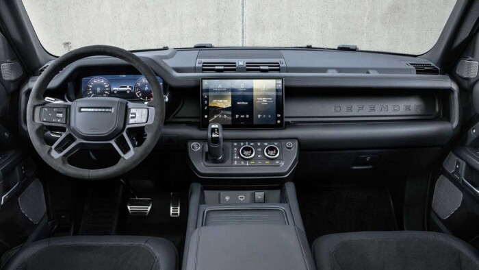 Від стандартного Land Rover Defender 2021 модифікація з V8 відрізняється особливими дисками на 22 дюйма, тонуванням і чотирма вихлопними трубами. Оздоблення салону виконане зі шкіри та алькантари.