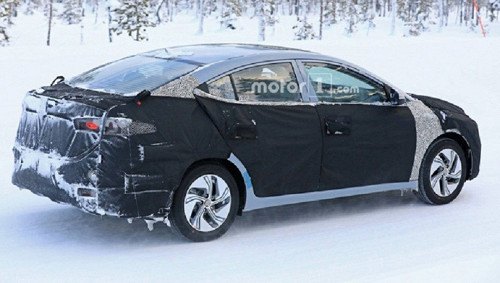 На відміну від звичайної Elantra, новинка отримала новий «передок», який зараз прикритий щільним камуфляжем, а також модернізовані задні ліхтарі.