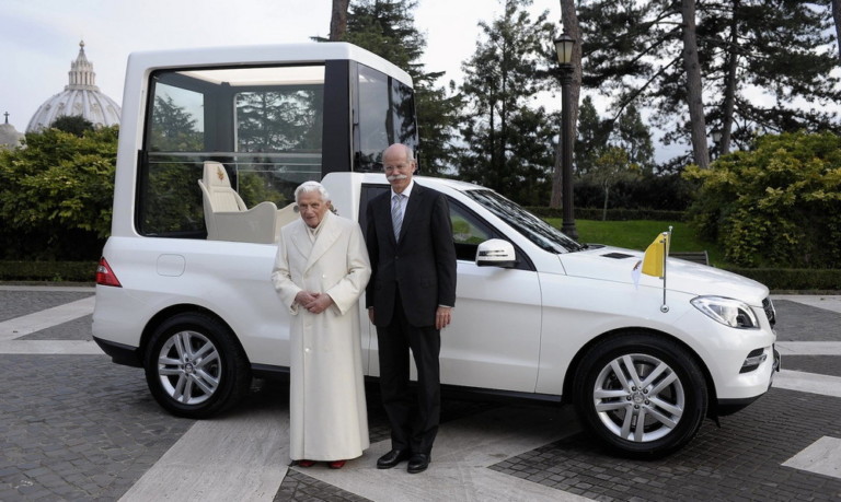 Один з відомих атрибутів Папи Римського – його транспортний засіб – «Папамобіль». Цей автомобіль пройшов безліч доопрацювань і модифікацій, щоб залишатися скромно-стриманим і безпечним. Так куленепробивний купол з органічного скла з’явився відносно недавно, після замаху на Папу Іоанна Павла Другого. Такі імениті компанії як Ford, FIAT Group і Leyland Motors в різний час створили десятки моделей, щоб задовольнити потребу Папи в транспорті. Папа Бенедикт XVI надавав перевагу Mercedes-Benz M-Class зі скляним куполом позаду. А ось чинний папа Франциск частіше їздить на скромному Renault 4 1984 року.