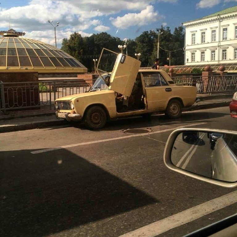 На вигляд звичайний ВАЗ “копійка”, але двері в нього відкриваються, як у відомих італійських спортивних автомобілів Lamborghini.