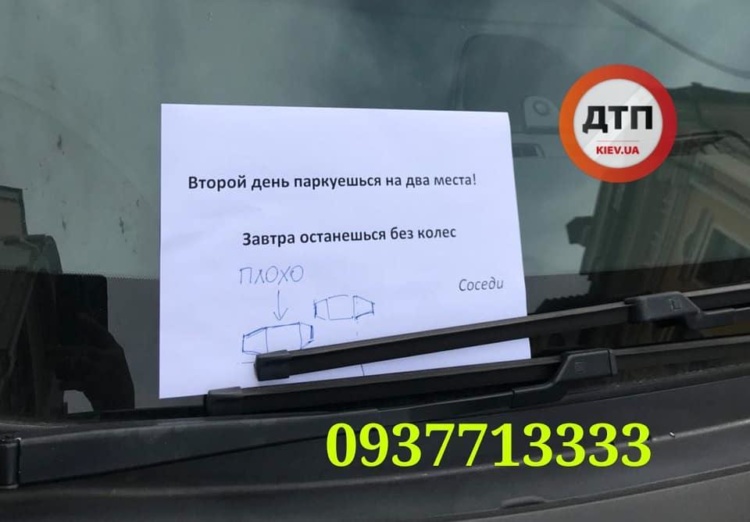 “Другий день паркуєшся на два місця. Завтра залишишся без коліс”, – повідомлення такого змісту залишили порушнику.