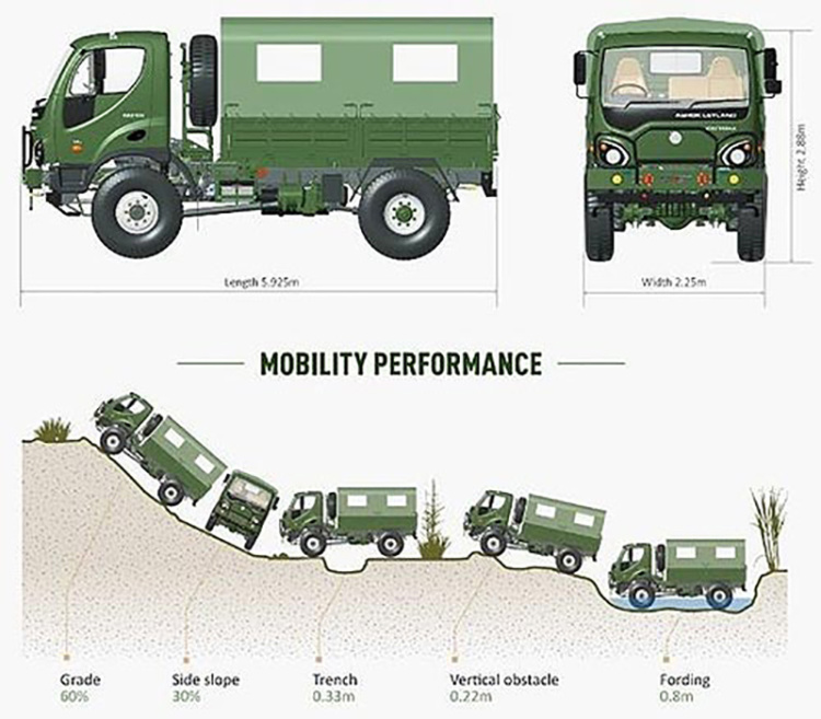 Але виявляється, військовим БАЗ готовий представити і ще одну повнопривідну новинку. В якості альтернативи ГАЗ-66 корпорація «Еталон» готова запропонувати ще один автомобіль індійського виробництва – Ashok Leyland Guru 715 у виконанні 4х4, представлений на виставці озброєнь в Делі в 2018 році.