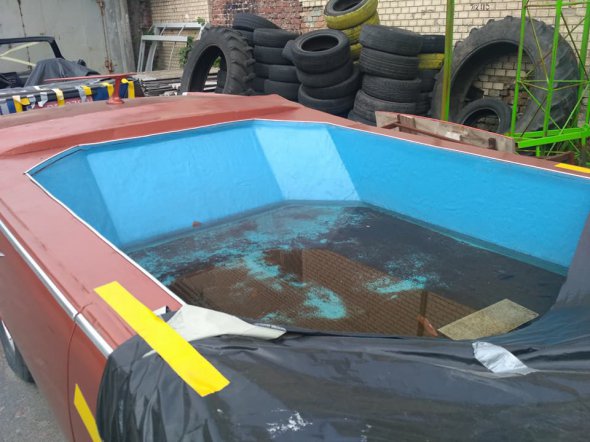 На вулицях столиці в об’єктив автолюбителів втрапив незвичний лімузин Cadillac. В одному з київським дворів хтось припаркував залізного “американця” з басейном замість пасажирських сидінь, повідомляє Газета по-українськи.