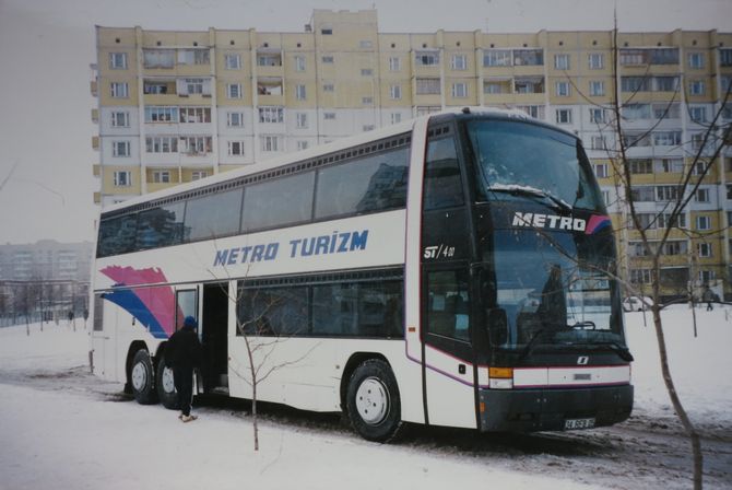 Нещодавно в Києві вдалося сфотографувати один такий автобус – це двоповерховий лайнер ST 400 від іспанського кузовного ательє Obradors. Таких саме моделей в Україні тільки дві – одна зареєстрована в Кіровограді, а та, що на фото – в Запоріжжі.