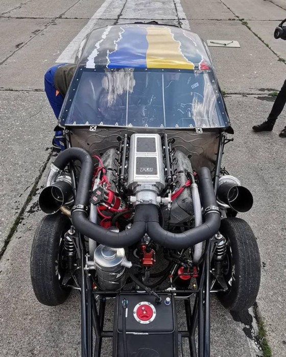 Маса авто – 1200 кг. Під капотом встановлено 8-циліндровий двигун і система турбонаддування. Таке поєднання дозволяє генерувати неймовірні 4000 кінських сил.