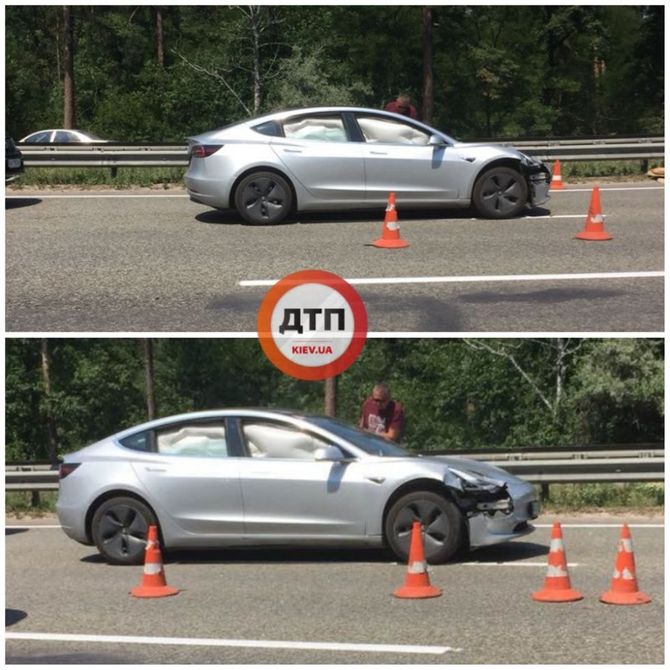 У підсумку, електрокар отримав значні пошкодження передньої частини, крім того, у нього розкрилися подушки безпеки.