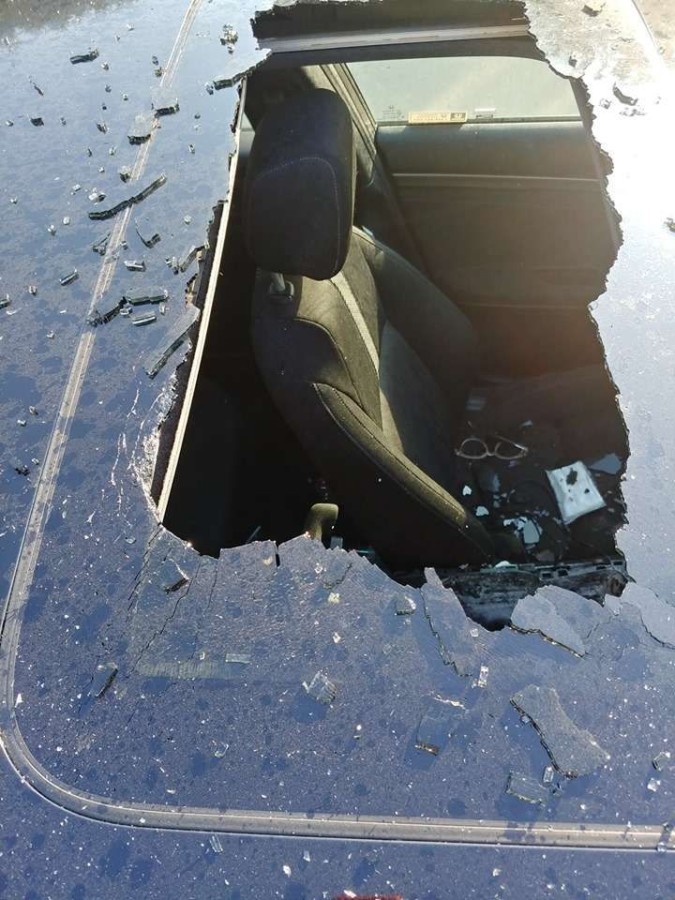 Пригода сталась у штаті Міссурі, США. Власниця автомобіля побачила, що скляний дах її автомобіля розбитий. Жінка разом зі своєю дочкою припустили, що з неба щось впало на машину.