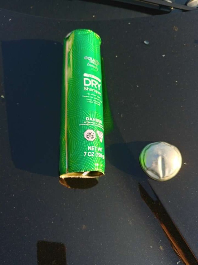 Однак навколо було розкидано багато скла, що наштовхнуло на думки про вибух зсередини. Власне, так і сталося. Річ у тім, що в боксі під підлокітником лежав газовий балончик з сухим шампунем. Так, він вибухнув. А те, що від нього залишилося, приземлилося за 15 м від машини.