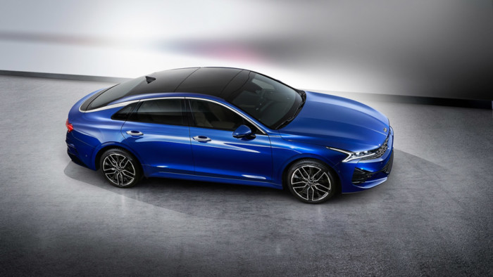 Запорукою стильного і динамічного силуету нової KIA K5 / Optima виступає форма кузова із спадаючми дахом, стильна решітка радіатора, головні фари з Z-подібним малюнком і задні ліхтарі, які з’єднані між собою світлодіодною смужкою. Крім цього, новинка може похвалитися модернізованим набором колісних дисків темно-сірого, світло-сірого і чорного відтінку.