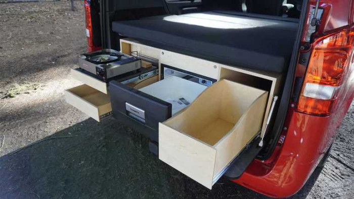 У задній частині знаходиться кухня, в якій поки відсутня будь-яка система водопостачання. Проте, на кухні є холодильник, пропанова плита і багато місця для зберігання. В фургон також вбудована акумуляторна батарея ємністю 90 А/г, яка живить холодильник, внутрішнє освітлення і порти UBS.