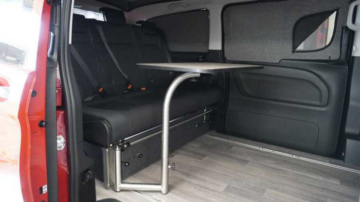 Новий Caravan Outfitters Backroad отримав безліч зручностей. Ззаду є складна тримісна лава Reimo, яка може трансформуватися в двоспальне ліжко, а ще двоє можуть розташується в наметі з висувним дахом. Лава в складеному вигляді є сидінням для обіднього столу.