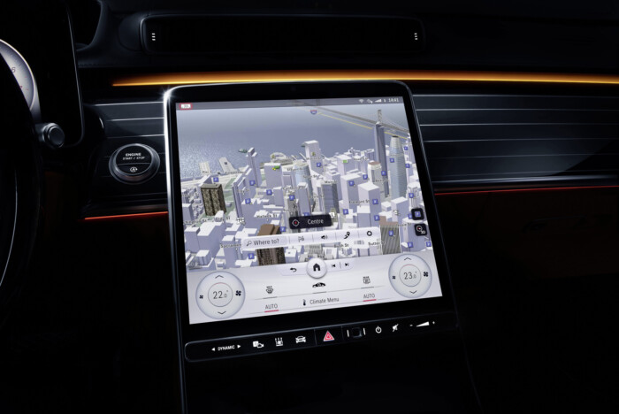 Основою мультимедійної системи MBUX стане 12,8-дюймовий OLED-дисплей з тактильною віддачею Haptic Feedback, однак за бажання керування автомобілем можна здійснювати і голосовими командами.