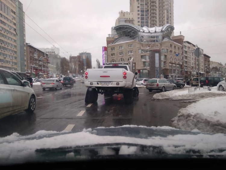 У Мережі обговорюють фото переобладнаного пікапа, який замість коліс цілком бадьоро пересувався по Києву на гусеницях. Як бачимо, авто має львівську реєстрацію, передає Autonews.ua.