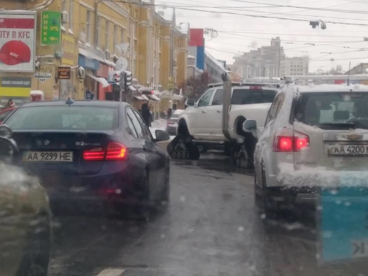 Для довідки: подібні гусениці на автомобілі роблять з гуми і їх можна придбати через інтернет. Однак настільки серйозною підготовкою до української зими займаються далеко не всі водії.