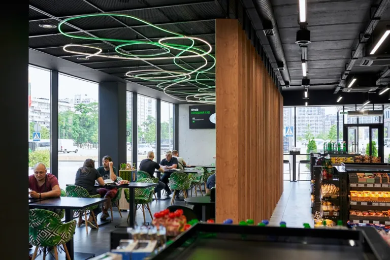 Поки ви заправляєте авто, відпочиваєте за чашкою кави чи обідаєте, ваша малеча бавиться. У залах встановлено спеціальні бізіборди, які розвивають дрібну моторику та допомагають малюкам із цікавістю вивчати світ.
