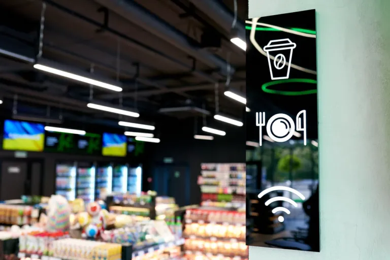 Крім чітких та зрозумілих навігаційних вказівників, відвідувачі дізнаються важливу інформацію з екранів, розміщених на висоті у зонах кас і VIVO café. На цих моніторах – повідомлення про новинки мережі, реклама, підказки, мотиваційні ролики. Наприклад, про новинку літнього сезону 2023 року – відразу три види морозива ice U та мілкшейк ice POWER – ми дізналися саме з екранів у касовій зоні.