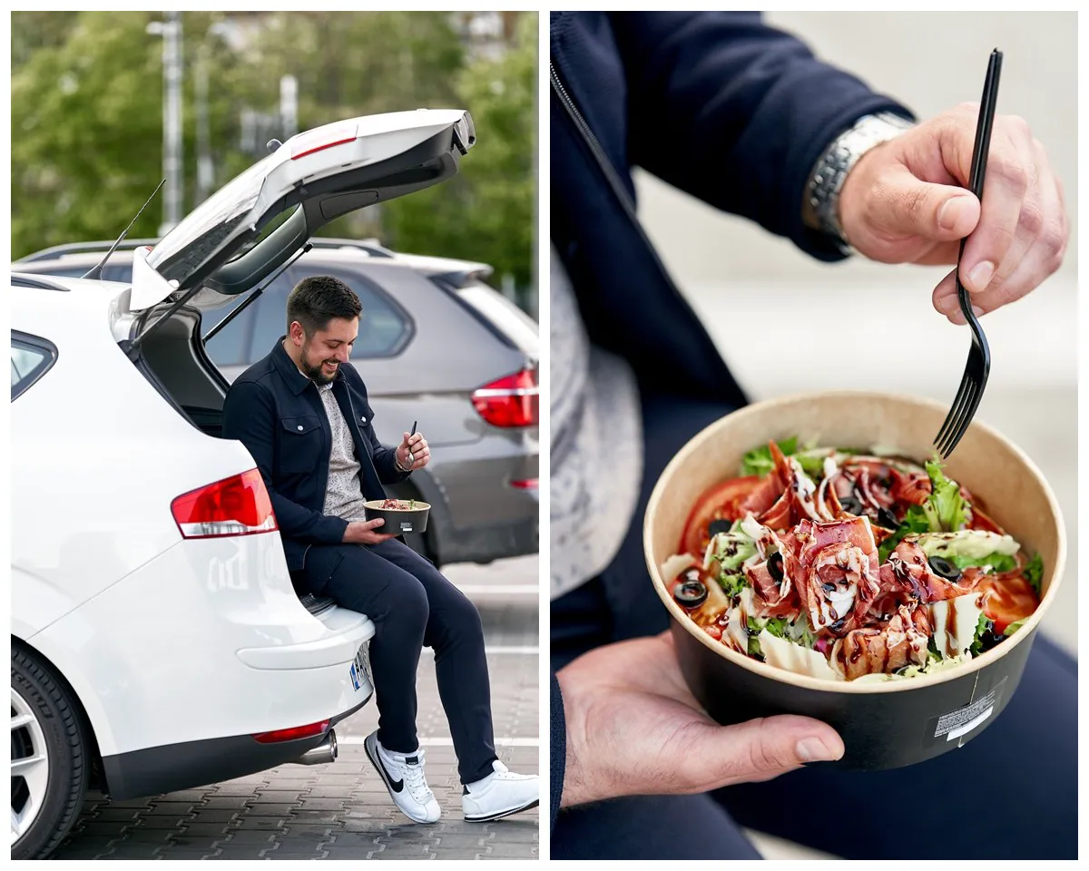 Варто сказати, що навіть якщо ви зовсім не маєте часу на обід, обрану страву бережно запакують у спеціальний контейнер та крафтовий пакет, щоб було легко та зручно взяти її з собою.