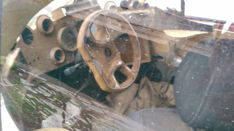 В салоне автомобиля можно заметить деревянный руль и грубую приборную панель. Автомобиль сделан в стилистике Безумного Макса.
