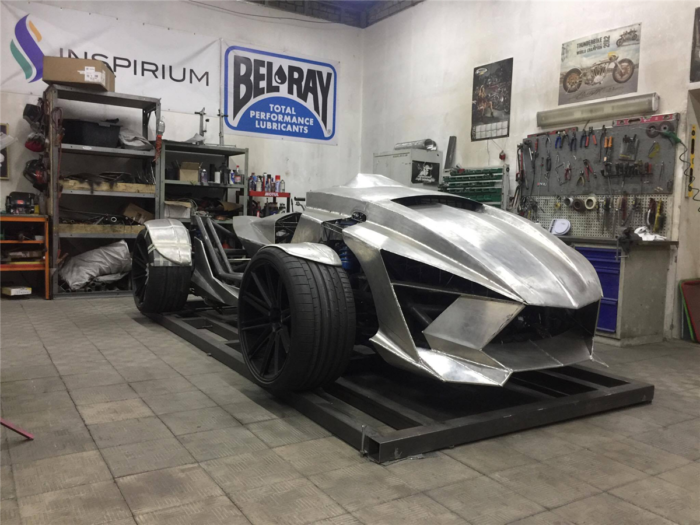 Наверное, наше «мотоциклетное» прошлое находит свое отражение и в авто-проектах. Мы не боимся экспериментировать с формами и инженерными решениями. Проект Quanta – наверное, самый необычный. Мы взяли за базу автомобиль Subaru Forester, вытянули из него подвеску, мотор и АКП – и установили все это в самодельную раму. Кузов данного авто-мотопроекта тоже был выполнен нами из алюминия. Все элементы подверглись тюнингу – мощность 600 ЛС (лошадиных сил), спортивная АКП, спортивная подвеска, впрыск метанола, карбоновые тормоза, кованные диски R22 индивидуального дизайна Vossen. Управление АКП – кнопочное, изготовленное нами (так мы отказались от селектора). А также музыка, сабвуферы и многое другое.