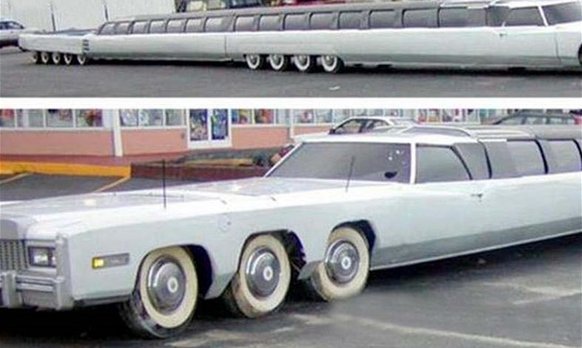 Для начала взяли два старых Cadillac’а, расположив их на расстоянии примерно 20 метров друг от друга и соединив пространственной балкой из стального профиля, которую потом обшили листовым металлом и назвали кузовом. Переднему Cadillac нарастили капот, вытянув его вперед, с заднего экземпляра снесли крышу, встроили 5 осей и перенесли руль в багажник. Таким образом, самый длинный лимузин в мире получил два двигателя и две ведущих оси, по одной спереди и сзади.