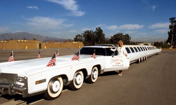 Самый длинный в мире лимузин Джей представил к началу 1990-х и назвал вполне предсказуемо – «Американская мечта». Соответственно, в нем есть все заокеанский атрибуты большого человеческого счастья: кожаные диваны, водонаполненная кровать, бар подсветкой, бассейн с подогревом, спутниковое телевидение и даже вертолетная площадка с двухместным Hughes 300 в придачу. Правда, ездил этот автомобиль очень плохо – маневрировать практически невозможно, но разве это главное? Не для того он и строился, чтобы кататься по дорогам.