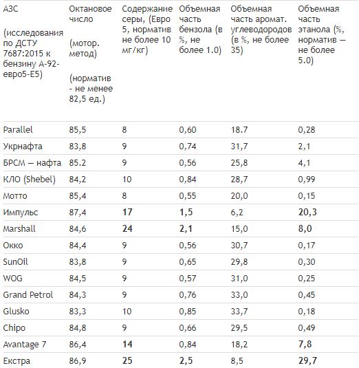 Повышение цен топлива традиционно негативно сказывается на его качестве. Некоторые АЗС пытаются удержать цену за счет снижения характеристик горючего. Институт потребительских экспертиз провел исследование топлива из крупных (ОККО, WOG, Укрнафта) и средних (Parallel, Мотто, Glusko, КЛО, БРСМ-Нафта, Sun Oil, Chipo, Marshall, Avantage 7, Grand petrol) сетевых АЗС, а также единичных не сетевых. Тестировали бензин А-92 евро.