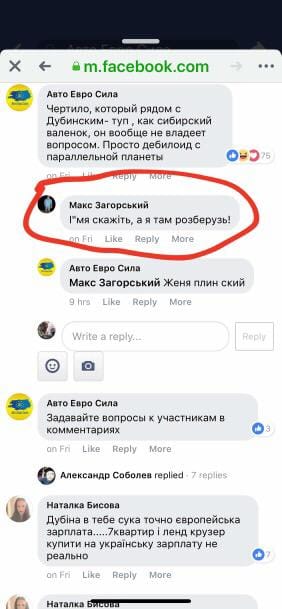 «После того, как в пятницу, на публичных дебатах с Авто Евро Сила, мы с Александр Дубинский доказали, что они под прикрытием защиты бляхеров, попросту зарабатывают на них деньги и выстроили на этом бизнес схему, они перешли к персональным оскорблениям и угрозам. Ну а как иначе, альтруизм ребят из АЕС, в который верили рядовые «евробляхеры», оказался под угрозой», — отметил журналист на своей странице в Facebook.