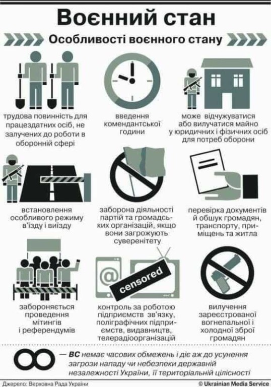 Таким образом, если власти введут военное положение, то украинцы могут столкнуться с трудностями в вопросе перемещения, задержек из-за проверки документов и досмотра ТС и, что еще более радикально, временно остаться без автомобиля/ей. Зато в пунктах пропуска для украинцев никаких ограничений не будет, пообещал глава Госпогранслужбы. В то же время президент заверил, что права и свободы граждан никоим образом не будут нарушены.